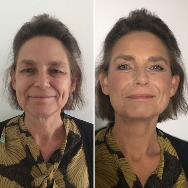 Vandaag heb ik Tineke mogen opmaken. Zij draagt zelf weinig tot geen make-up. Zij ziet zonder bril niets, dus dan wordt het opmaken je ook wel lastig gemaakt. Bij Tineke begon ik op een schoon gezicht. Graag vertel ik je wat ik qua make-up heb gebruikt om deze ‘natural’ look te creëren bij Tineke.